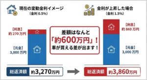 「固定が上がるなら、まだ低い変動金利でいいや」 そう考えるのは自然ですが、ここには落とし穴があります。